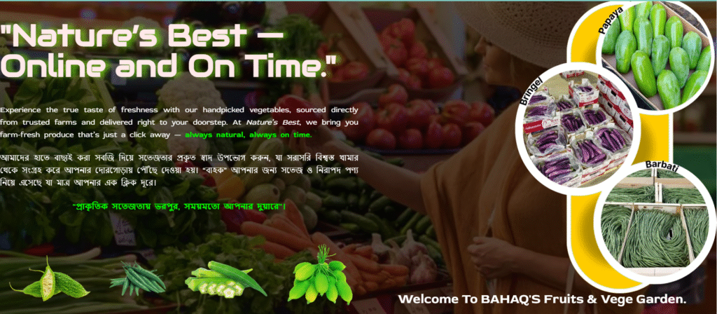 আমাদের হাতে বাছাই করা সবজি দিয়ে সতেজতার প্রকৃত স্বাদ উপভোগ করুন, যা সরাসরি বিশ্বস্ত খামার থেকে সংগ্রহ করে আপনার দোরগোড়ায় পৌঁছে দেওয়া হয়। “বাহক” আপনার জন্য সতেজ ও নিরাপদ পণ্য নিয়ে এসেছে যা মাত্র আপনার এক ক্লিক দূরে।
